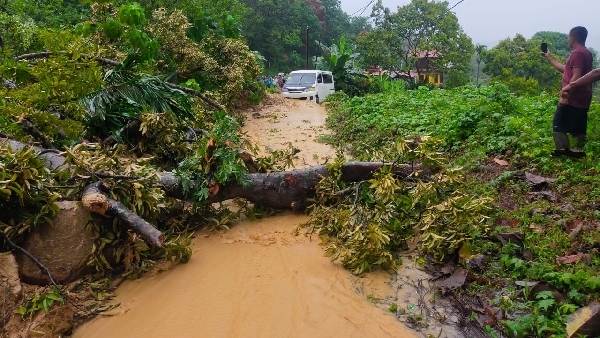 SPIRITSUMBAR.com, Pesisir Selatan – Longsor menutupi badan jalan di Kecamatan Batang Kapas, Kabupaten Pesisir Selatan, Sumatera Barat, Kamis, 16 Desember 2021, malam.