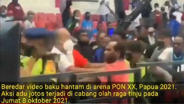 SPIRITSUMBAR.com, Papua – Beredar video baku hantam di arena PON XX, Papua 2021. Aksi adu jotos terjadi di cabang olah raga tinju pada Jumat 8 oktober 2021.