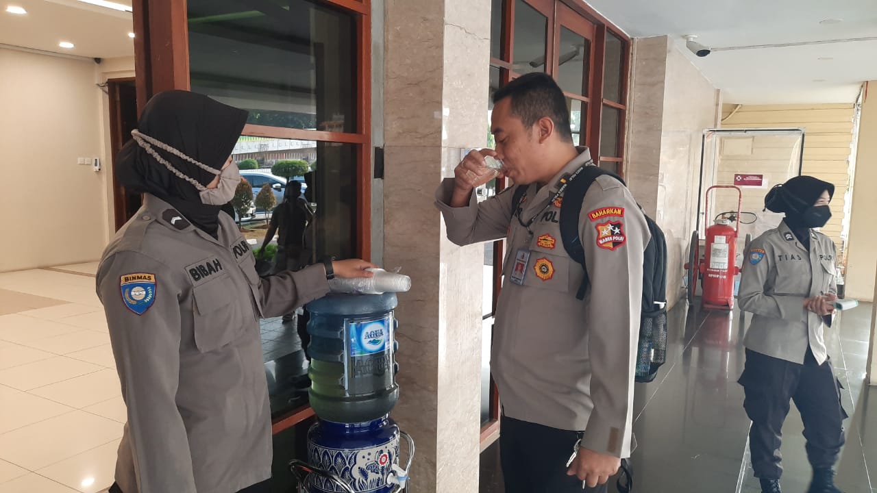 Kaopspus Aman Nusa II 2020 ini menerangkan bahwa, di depan pintu masuk penjagaan baharkam Polri disiapkan dua buah dispenser dan 2 galon yang sudah diisi dengan air yang telah diramu dengan cairan prebiotik ditambah madu.
