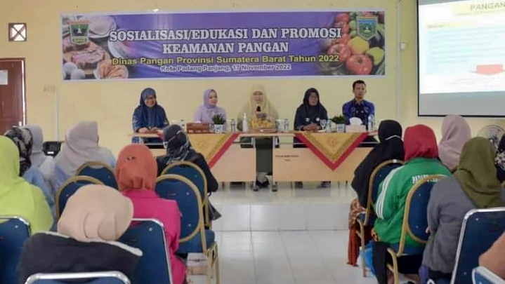Edukasi/Sosialisasi & Promosi Keamanan Pangan untuk tahun 2022 ini digelar oleh Dinas Pangan dan Pertanian Sumbar di 8 Kabupaten/Kota Sumbar. Padang Panjang merupakan rangkaian terakhir yang dihadiri juga Ketua Tim Penggerak PKK Kota Padang Panjang dr. Dian Fadly, Sp.JP, staf Dinas Pangan & Pertanian setempat. (Yetti Harni).