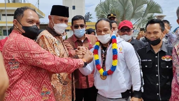 Sesampai di pintu VIP BIM itu, Gubernur Mahyeldi menyambut para duta-duta olahragwan Ranah Minang itu sekembali dari arena PON Papua. Binaragawan Iwand Samuray yang meraih medali emas mendapat penggalungan bunga dari orang nomor satu di Sumbar itu. Seluruh rombongan kloter I itu juga mendapat bunga dari Kadispora Sumbar, Dedy Diantaloni serta Wakil Ketua Umum II KONI Sumbar, Ediswal dan lainya.
