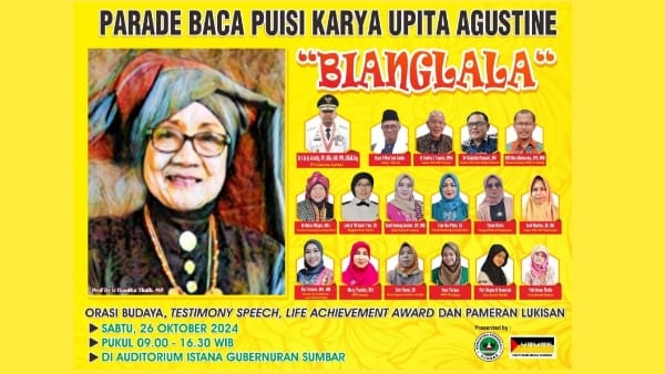 Padang, SPIRITSUMBAR.com — Hamas (Himpunan Media Sumbar) rencananya akan menggelar acara Parade Baca Puisi Karya Upita Agustine dengan tajuk “Bianglala” di Auditorium Istana Gubernuran Sumbar, pada Sabtu 26 Oktober 2024, pukul 09.00-16.30 Wib.