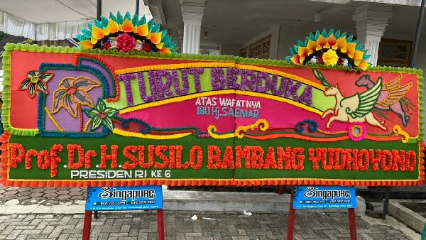 Karangan bunga ucapan duka cita terlihat di rumah duka Rabu kemarin dari Presiden RI ke enam Susilo Bambang Yudhoyono (SBY) Ketua Umum DPP Partai Demkrat Agus Harimurti Yudhoyono (AHY). Juga karangan bunga dari Kapolri Jenderal Listyo Sigit Prabowo dan tokoh Sumbar, semuanya mengungkapkan rasa duka cita mendalam atas wafatnya ibunda dari Ir H Mulyadi.