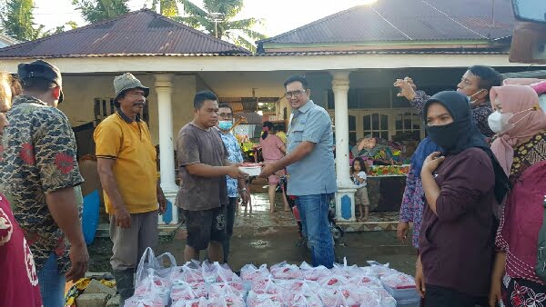 Aksi digelar dalam bentuk pembagian nasi kotak kepada masyarakat yang terkena korban banjir pada beberapa lokasi di Kota Padang.