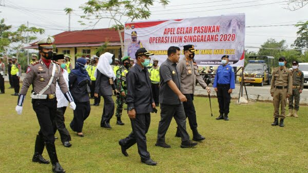 Pada Apel Gelar Pasukan Operasi Lilin Singgalang 2020 kali ini yang bertindak sebagai pimpinan upacara, Bupati Dharmasraya Sutan Riska Tuanku Kerajaan, SE.