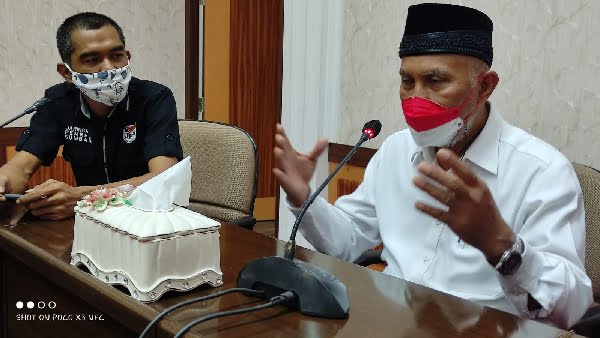 Mahyeldi bertemu Kordinator Heri Sugiarto bersama 15 anggota JPS tetap menerapkan Prokes Covid-19, beberapa jam usai Mahyeldi melantik Sekdaprov. Sumbar Hansastri.
