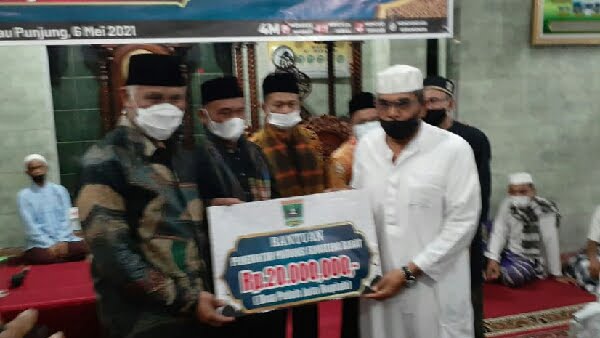 SPIRITSUMBAR.com, Dharmasraya – Gubernur Sumatera Barat Mahyeldi Ansharullah memberikan bantuan Rp 20 juta kepada Pengurus Mesjid Al-Barakah, Nagari Sungai Kambut, Kecamatan Pulau Punjung, Kabupaten Dharmasraya, Sumatera Barat, pada Kamis malam (6/5/2021.