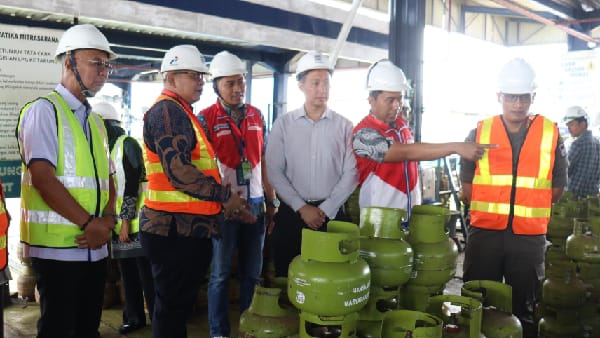 Saat sidak di SPPBE Statika Mitrasarana, Pj Wako Padang didampingi oleh Sales Area Manager (SAM) Pertamina Patra Niaga Sumbar Narotama Aulia Fazri, SBM Rayon I Devian Faris dan Ketua DPC Hiswana Migas Sumbar Ridwan Hosen
