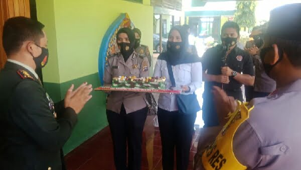 Dari mako polres Sijunjung yang berjarak lebih kurang 1 kilometer menuju ke Markas Kodim 0310/SSD Anggota kami dari polwan polres Sijunjung mendatangi dengan membawa kue ulang tahun TNI yang ke 75 tahun yang dipimpin lansung oleh Waka Polres Sijunjung Kompol Andi Sentosa, SH. mengadakan sulaturrahim mengucapkan selamat Hari TNI ke 75. dalam kegiatan memberikan kue ulang tahun ke Dandim 0310/SSD Letkol Infri Endik Hendra Sandi, S, Sos, Mp yang didampingi langsung oleh Kas dim Mayor Ifanri Heronimus.S.