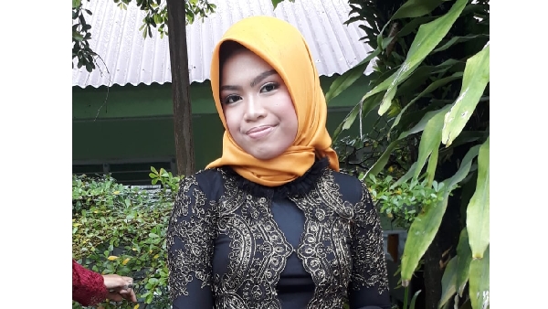 Putri sulung pasangan Ad Firma dan Liza Marlina ini tampil dalam fasion show mewakili kelas 9.3 mengenakan busana kebaya Raden Ajeng Kartini.
